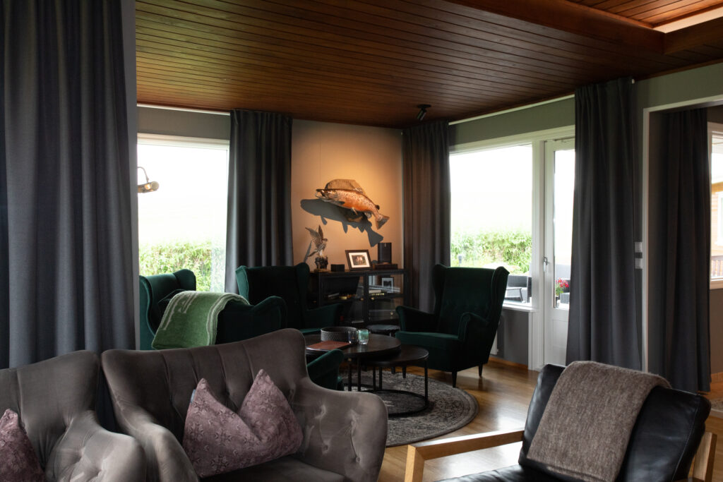 The Flóðvangur Lodge at Vatnsdalsá captures the essence of a classic fishing lodge, blending its authentic charm with understated elegance. Thoughtfully designed and surrounded by nature, the lodge offers beautiful views of the valley that enhance the experience. Each room is equipped with two comfortable beds and a private bathroom. After a day on the river, guests can unwind in the lodge’s hot tub or steam bath, enjoying the comfort and relaxation it provides.