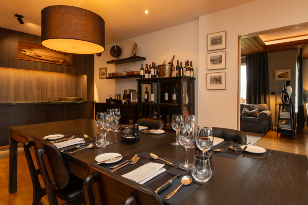 Dining is an essential part of the experience, with a fully serviced kitchen offering meals to suit every moment of the day. Guests can start with a hearty breakfast, enjoy a delicious hot lunch to recharge and round off the day with a three-course dinner feast. Prepared by a skilled chef, the dishes are inspired by Nordic traditions and enhanced with fresh, locally sourced ingredients as they fit, creating an experience that perfectly complements the natural beauty of Vatnsdalsá.
