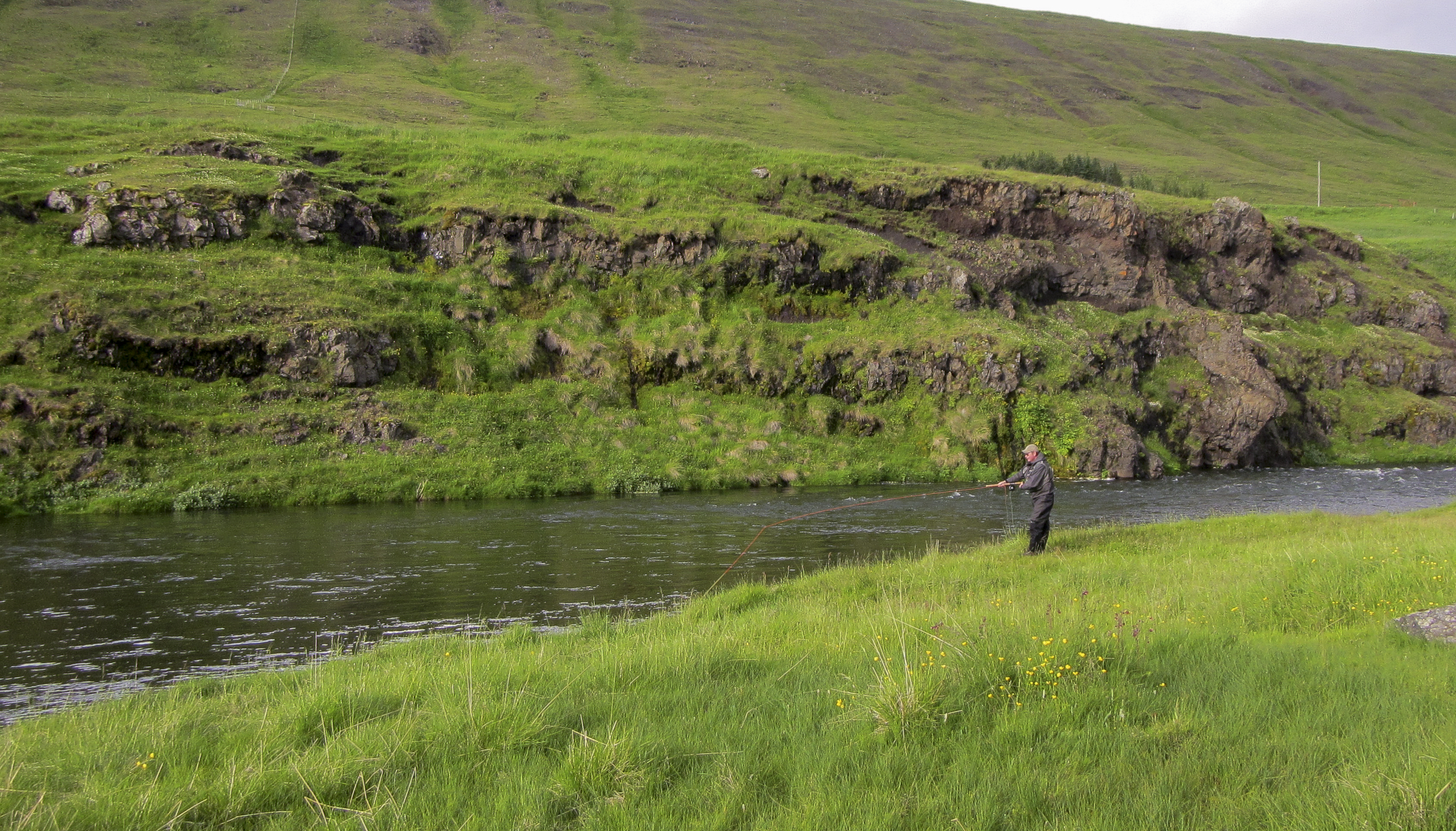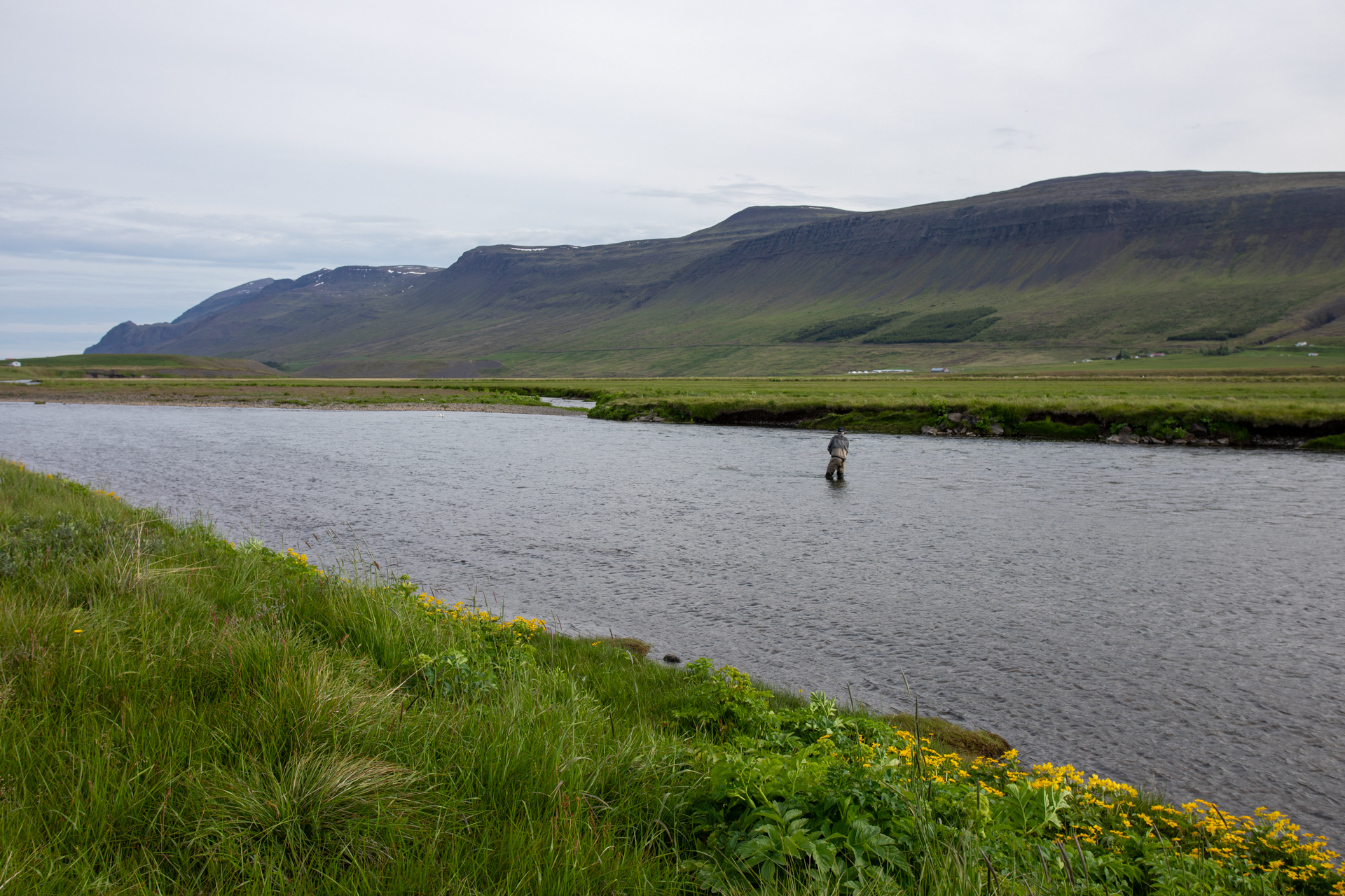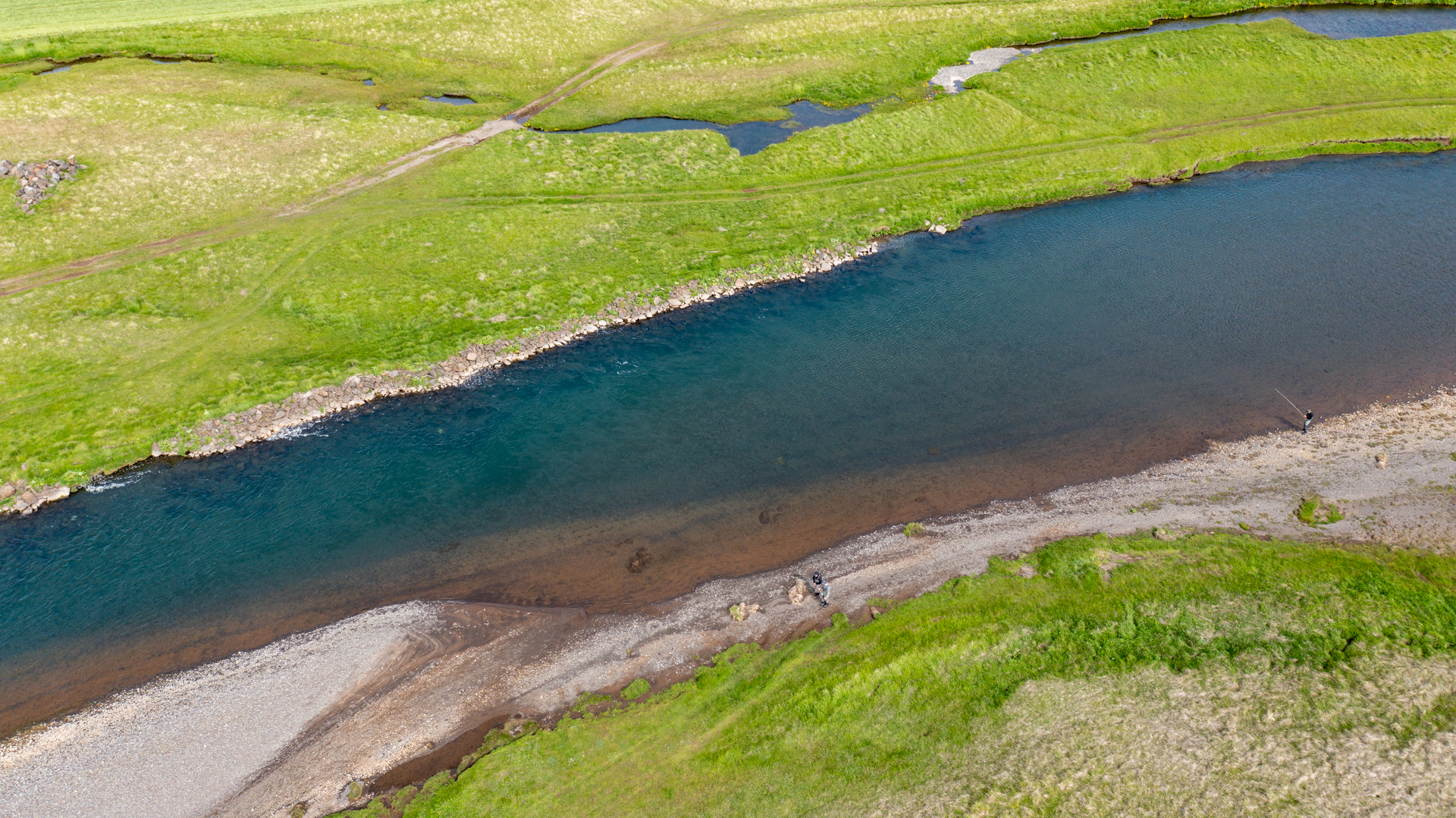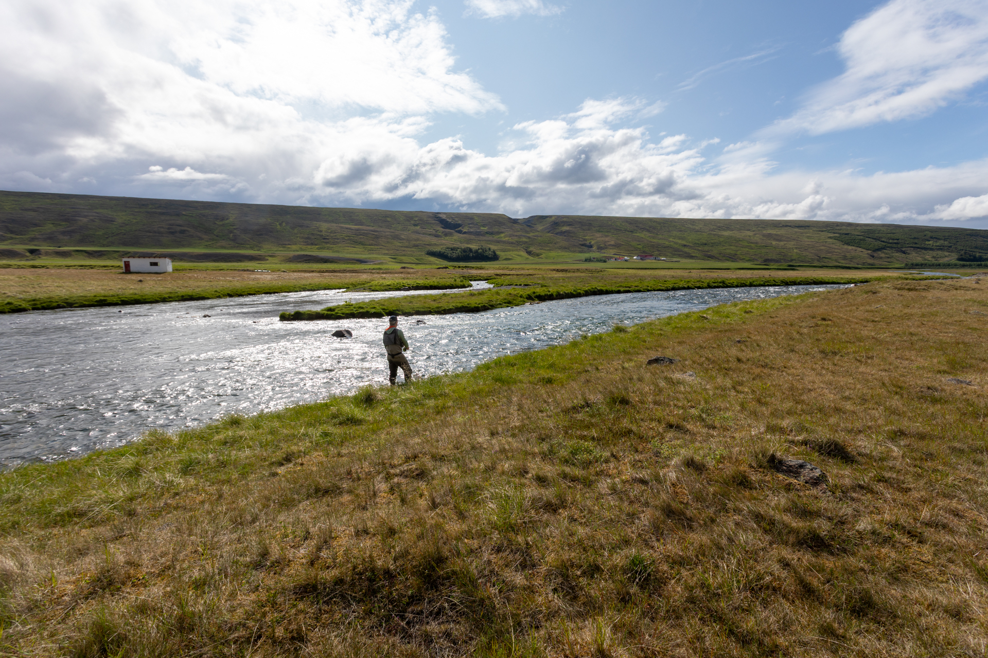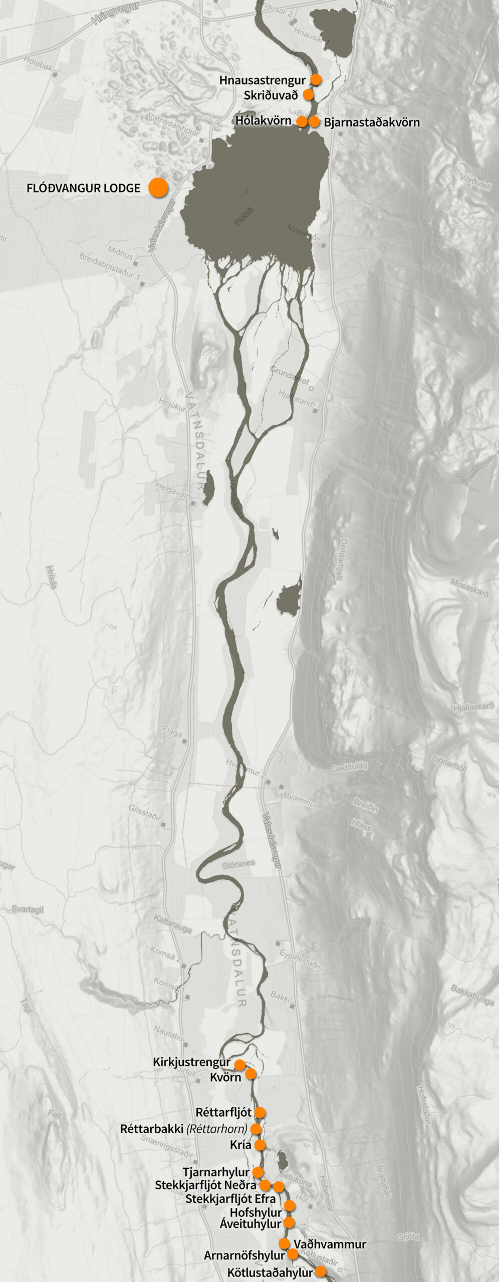 Its lowest part, one of the river’s most productive beats, lies within the trout fishing stretch below the lake Flóðið.