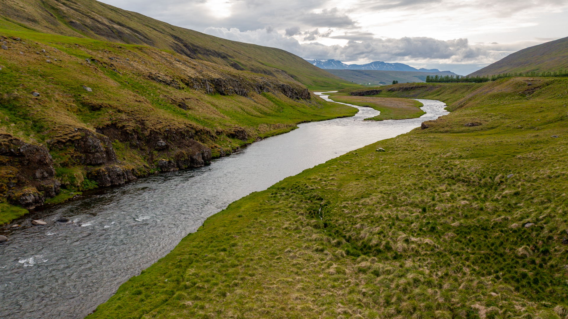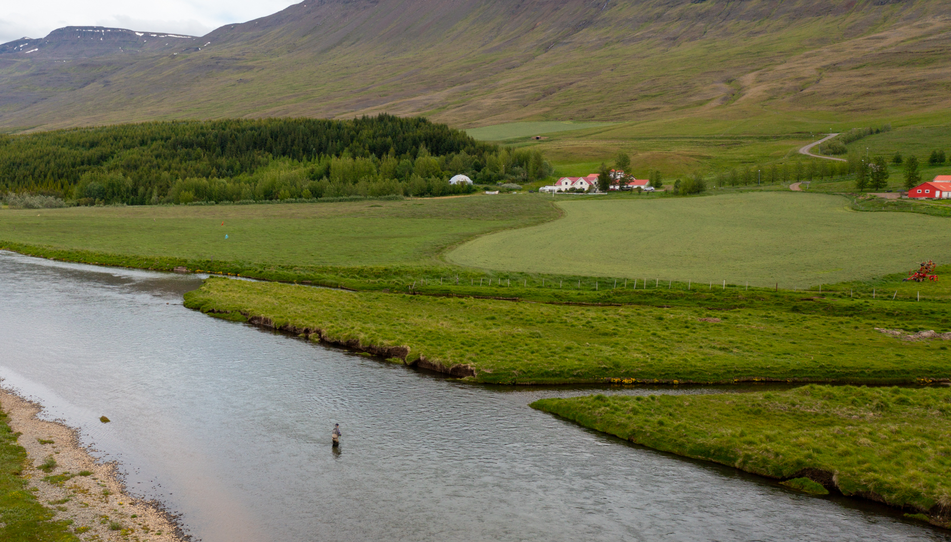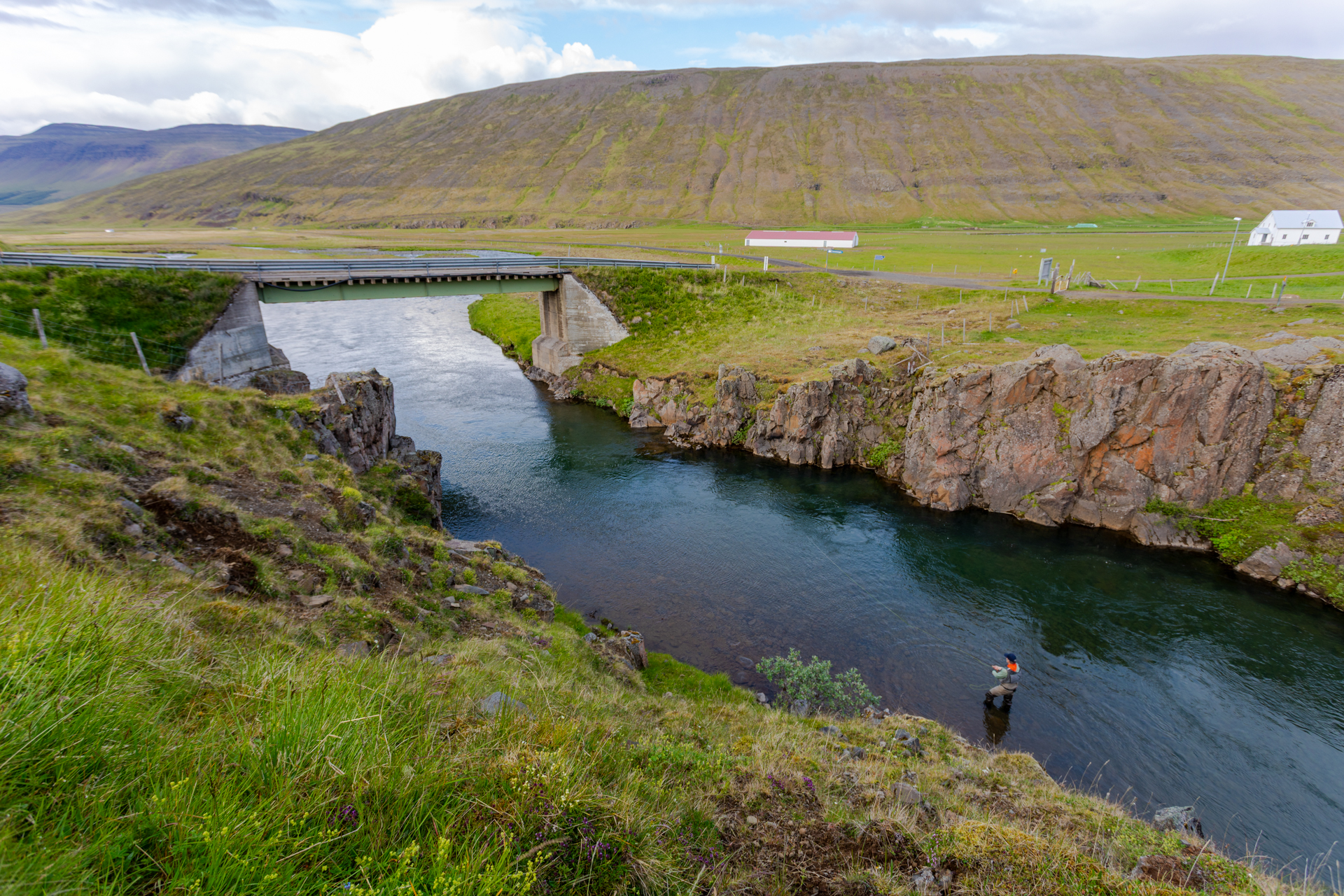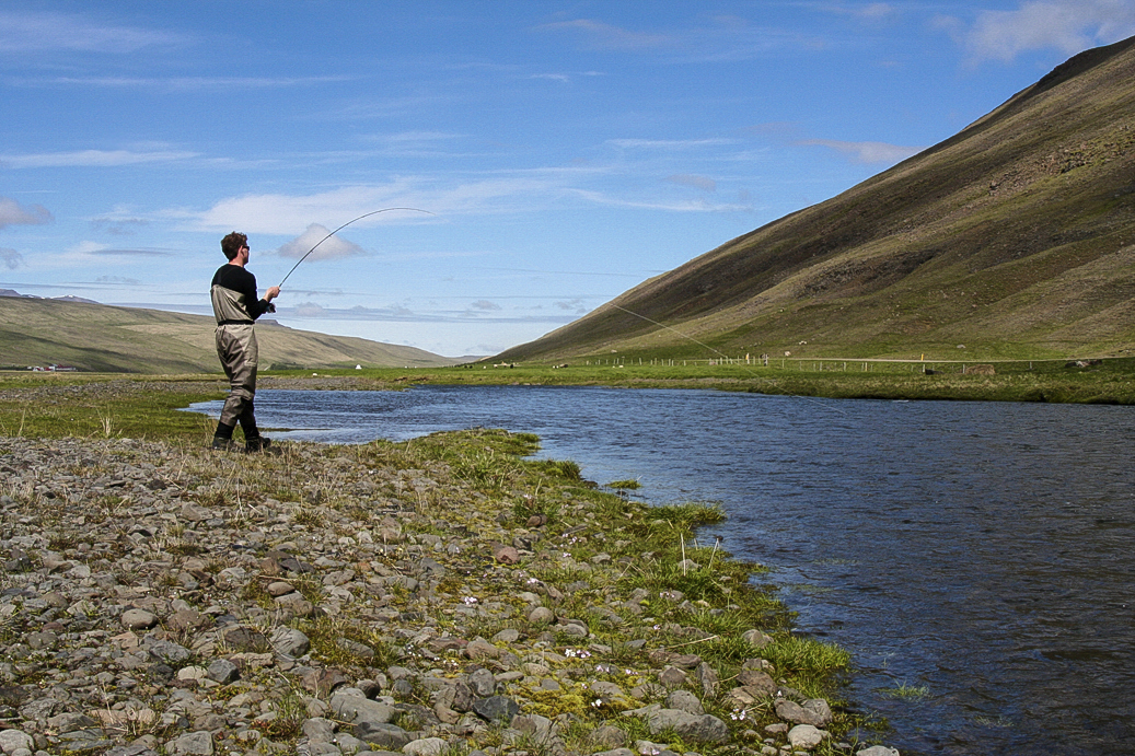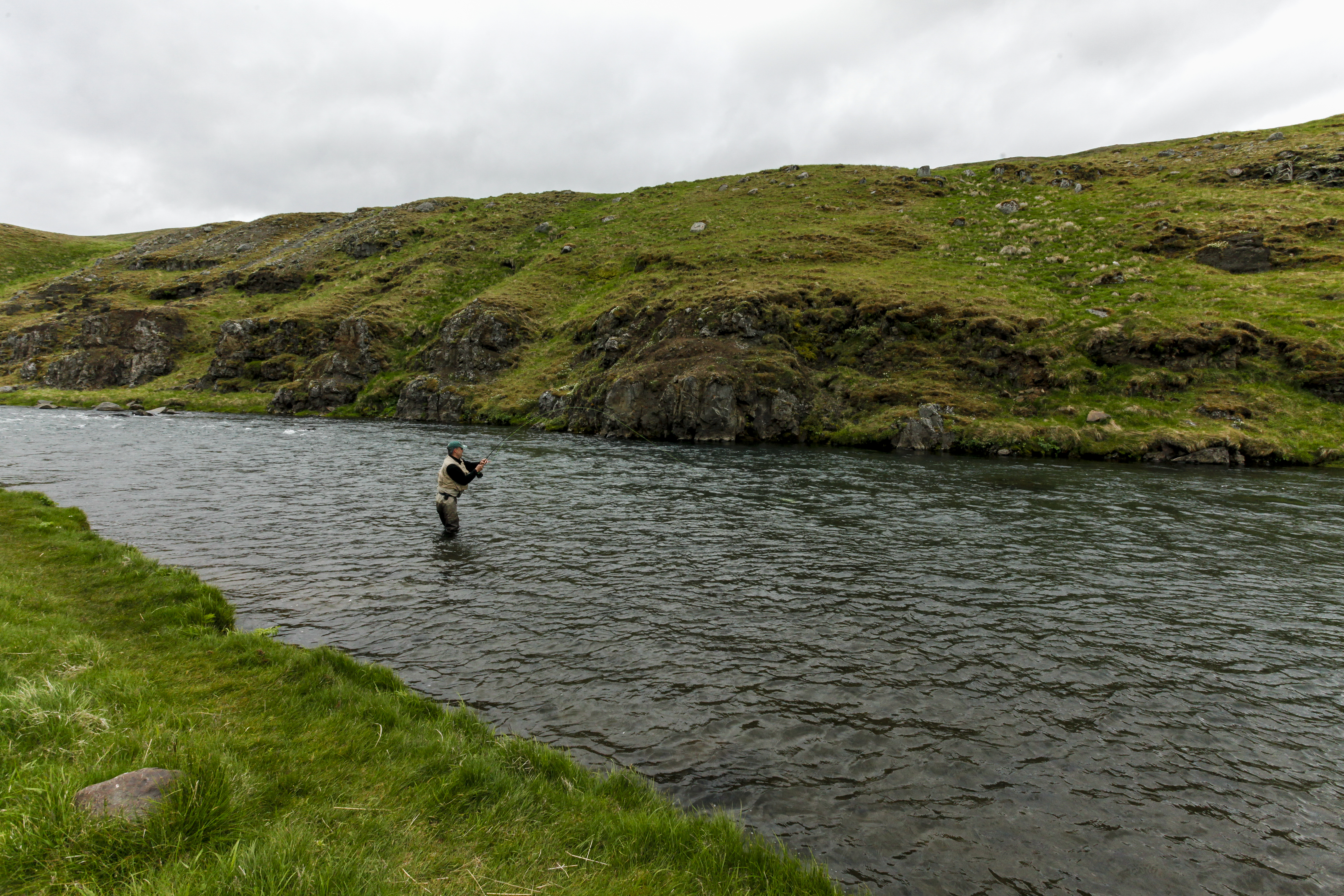 Its lowest part, one of the river’s most productive beats, lies within the trout fishing stretch below the lake Flóðið.