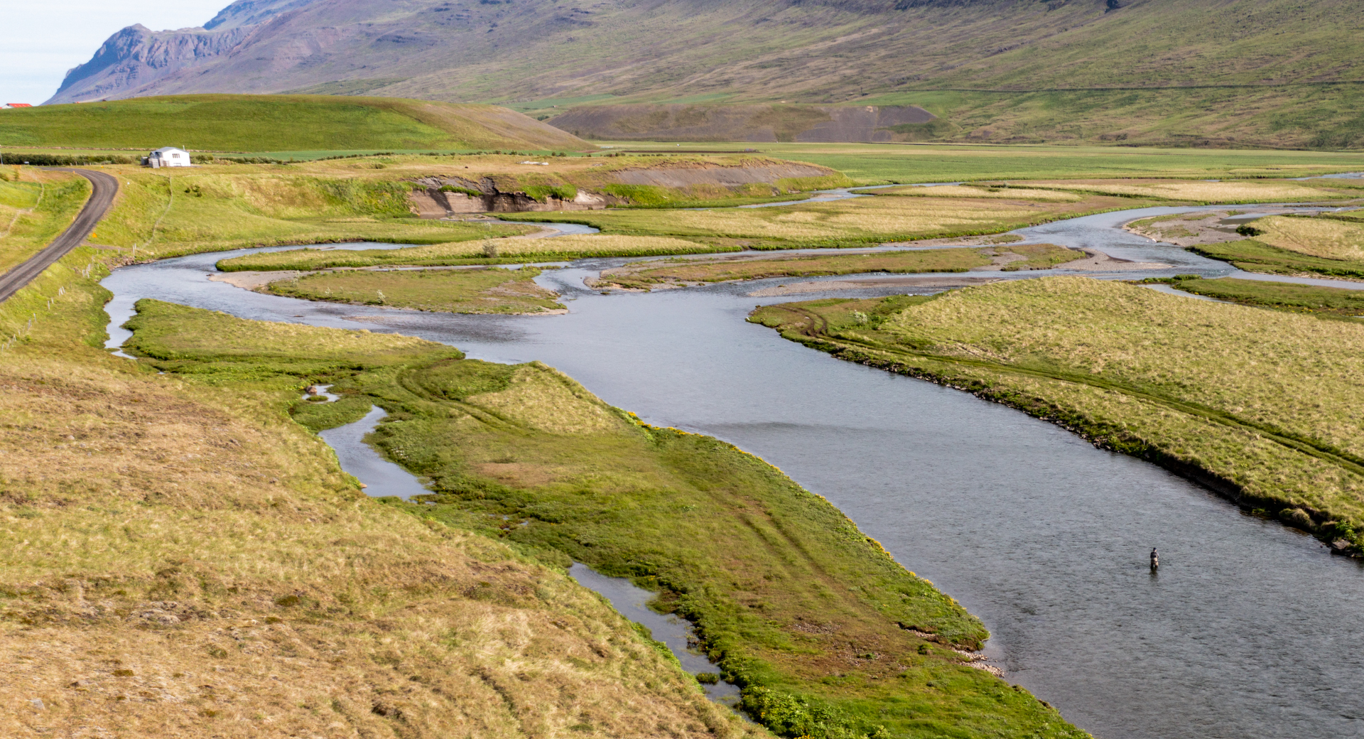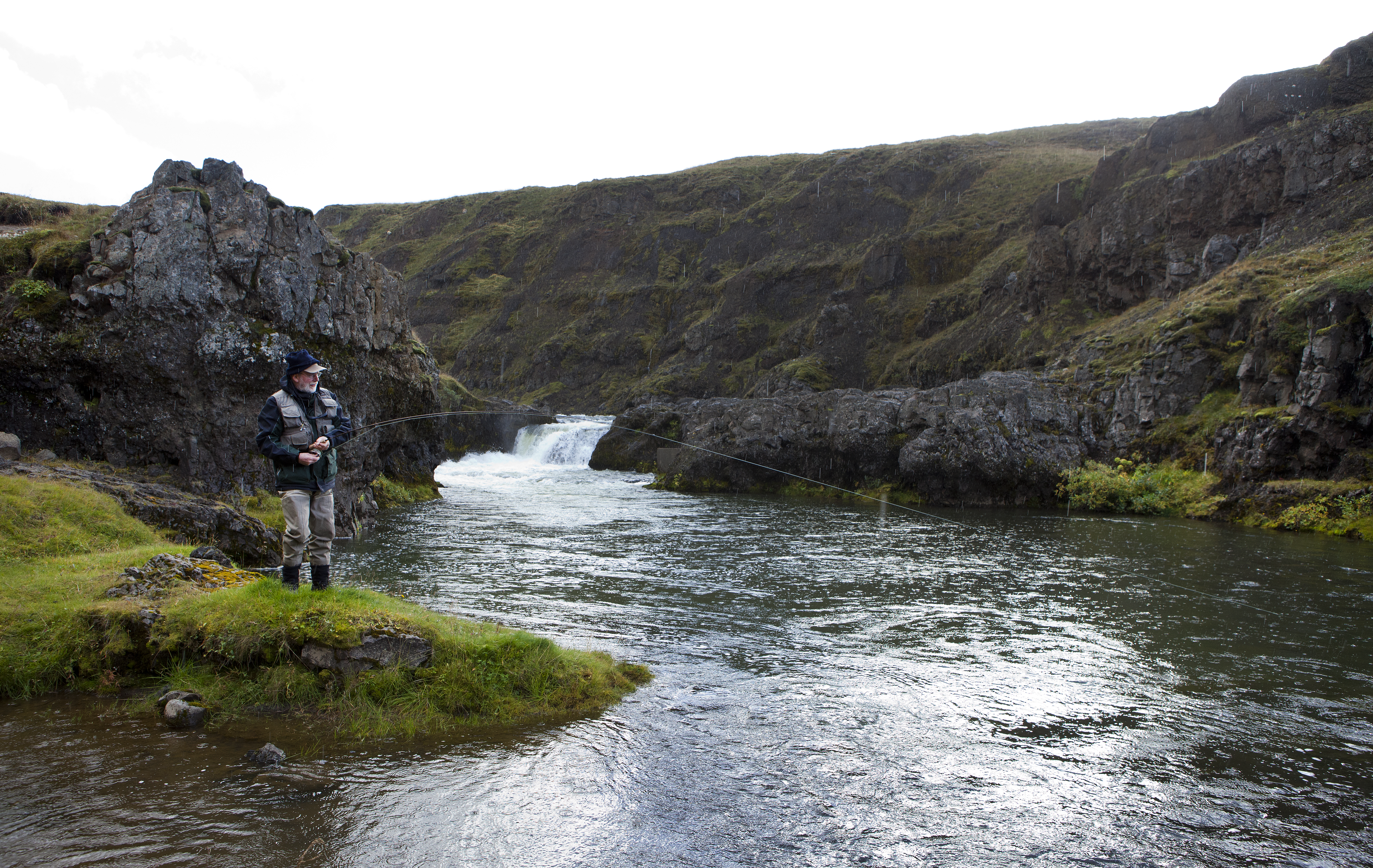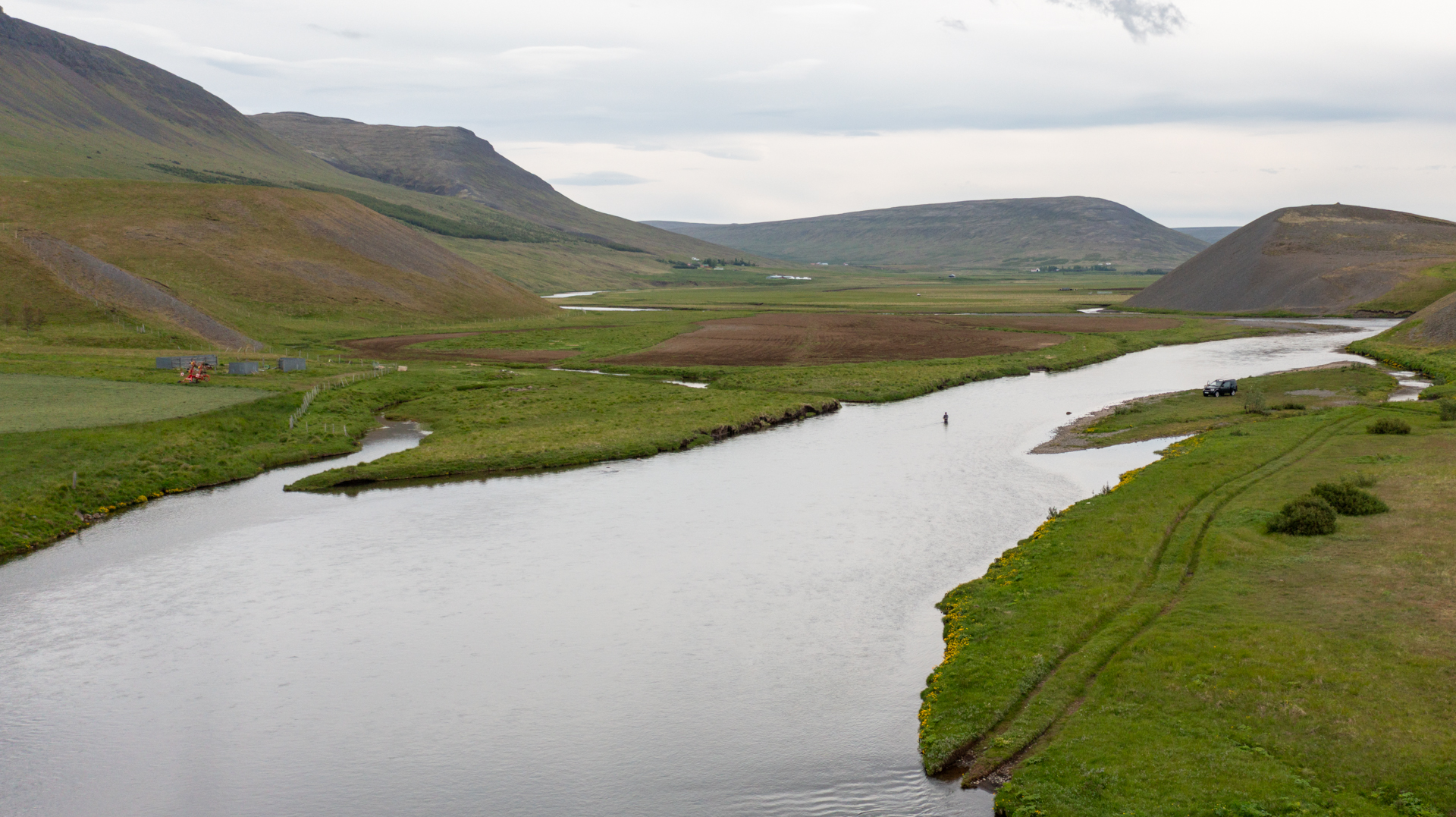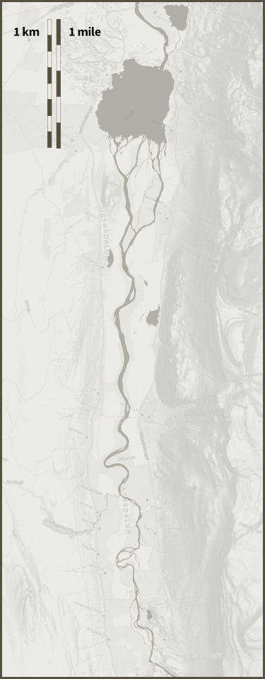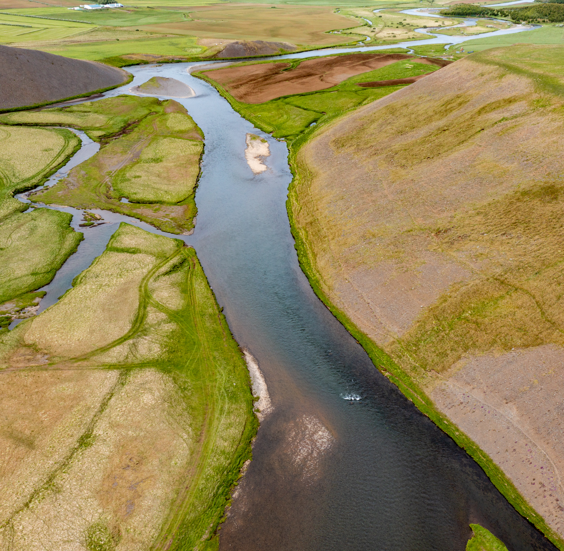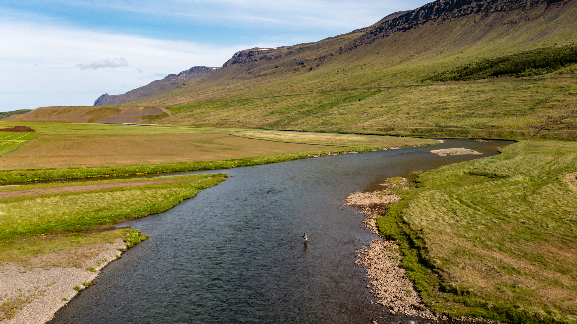 Its lowest part, one of the river’s most productive beats, lies within the trout fishing stretch below the lake Flóðið.