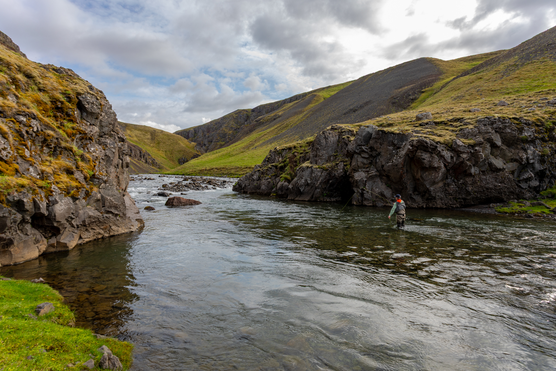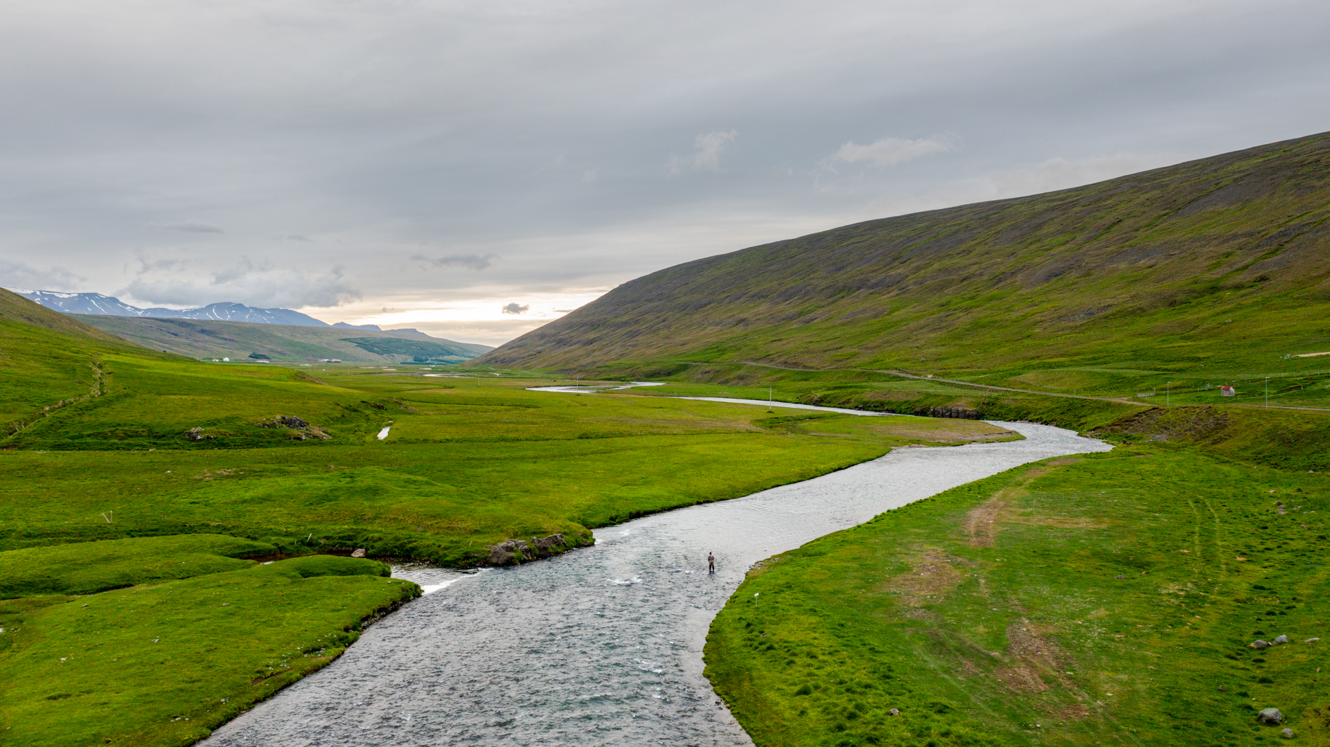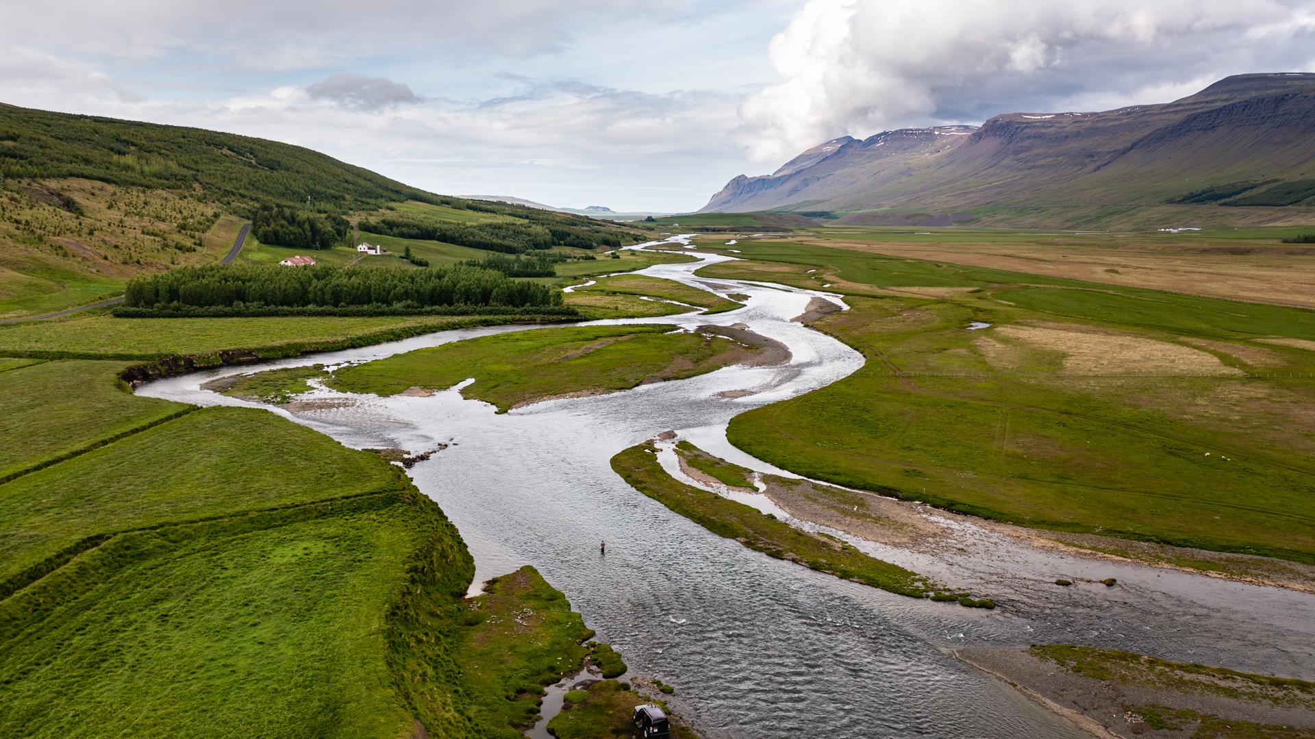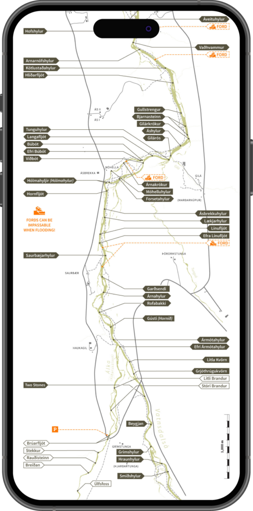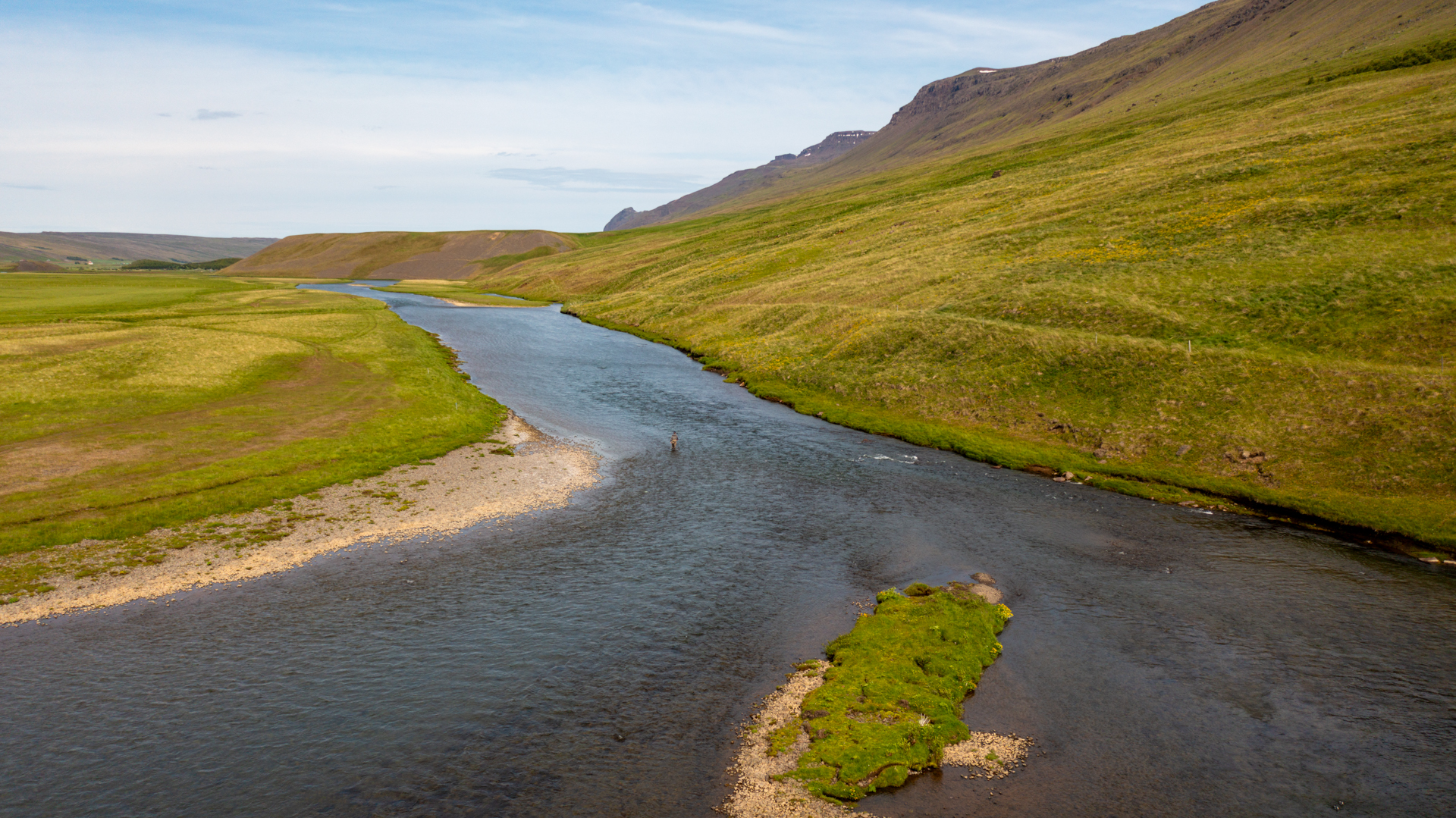 Its lowest part, one of the river’s most productive beats, lies within the trout fishing stretch below the lake Flóðið.