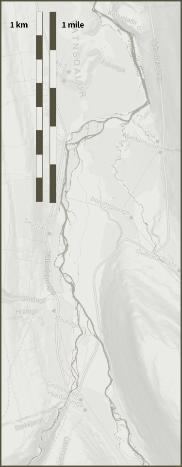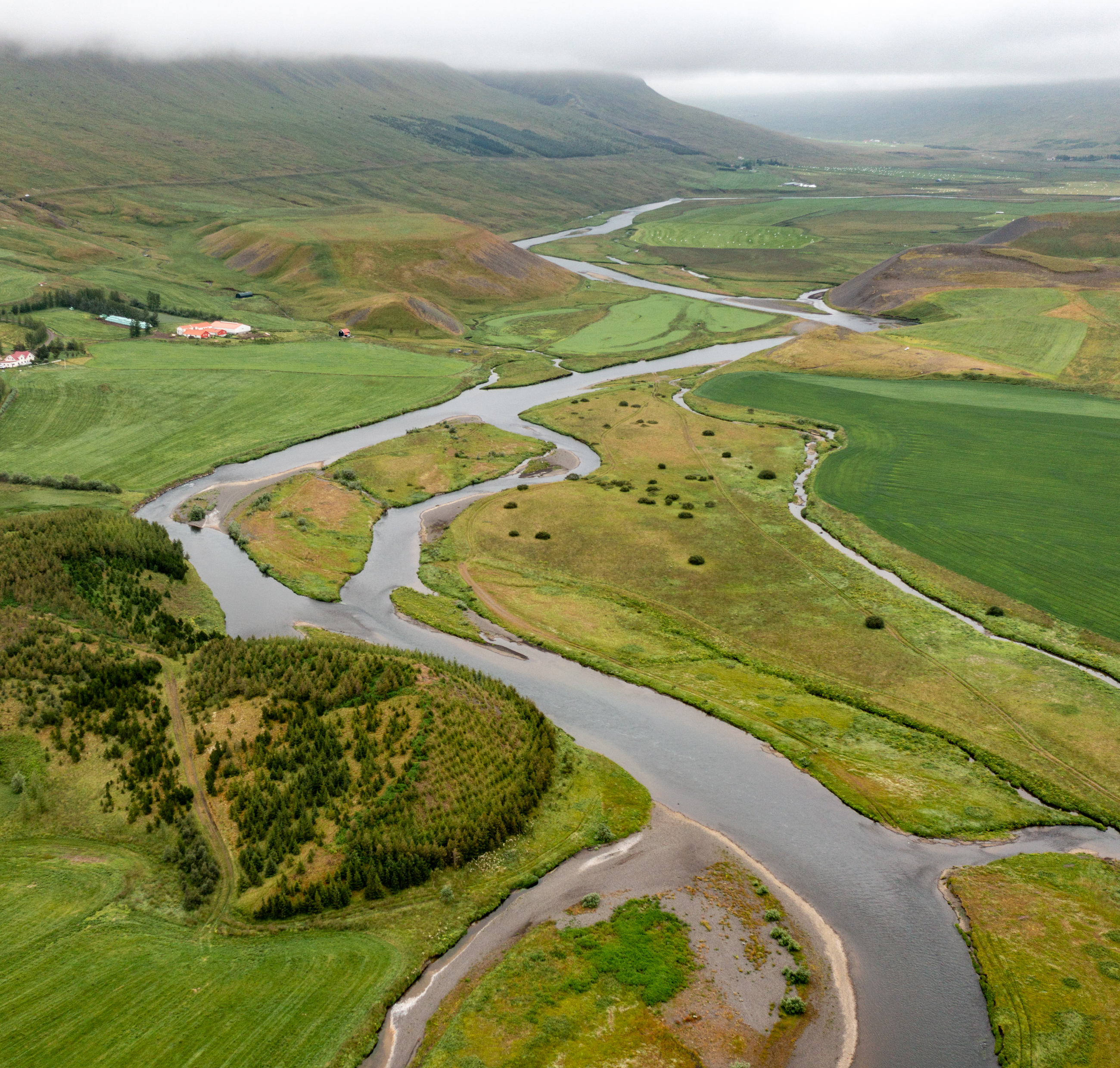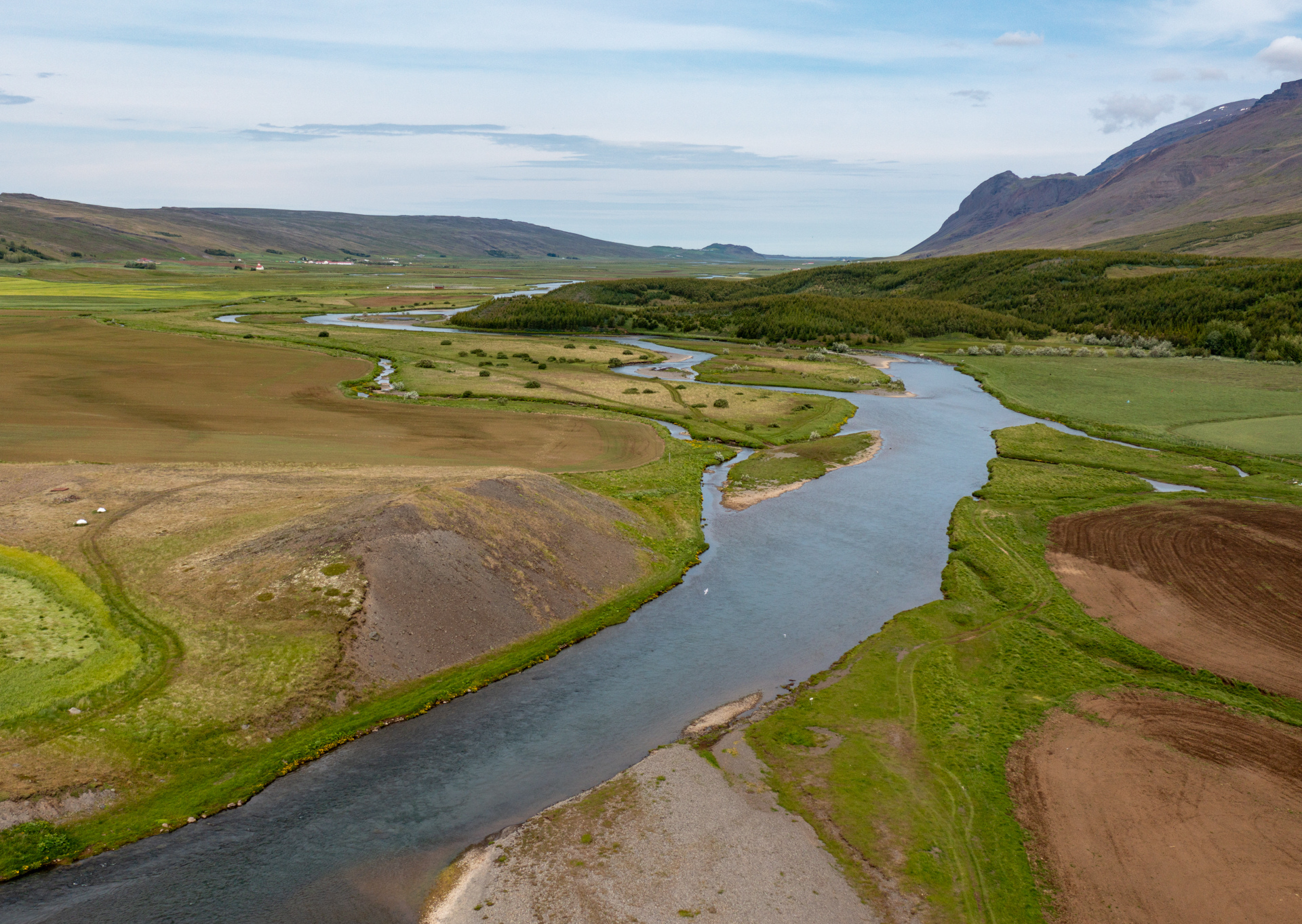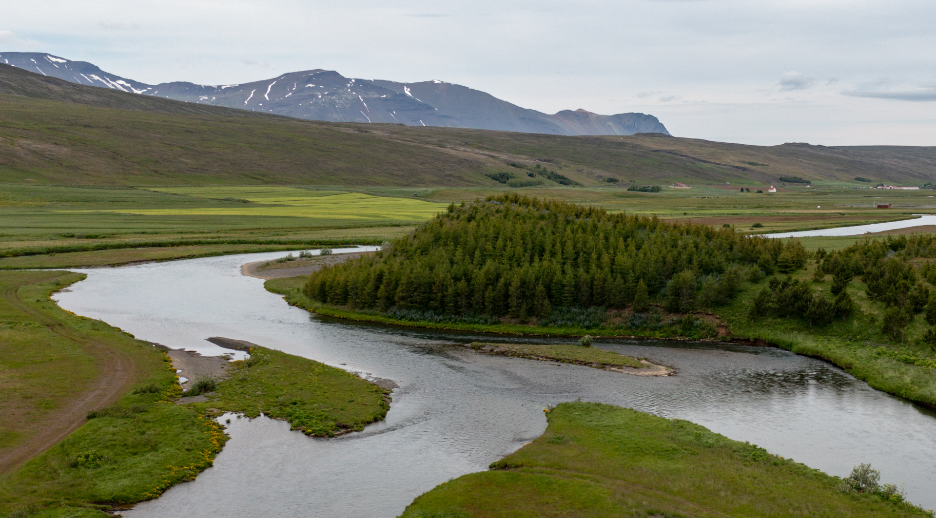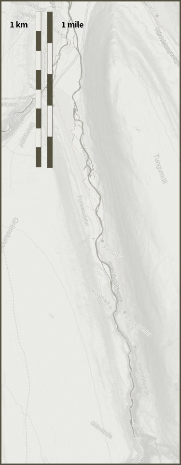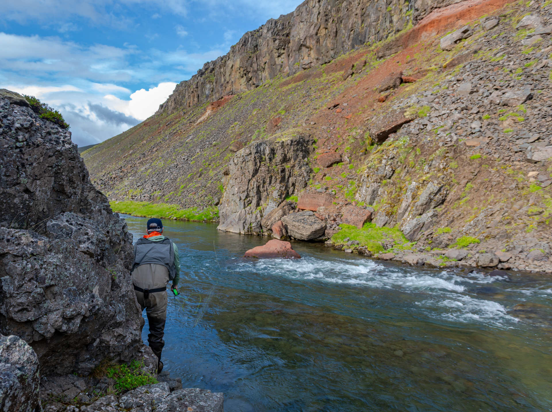 Its lowest part, one of the river’s most productive beats, lies within the trout fishing stretch below the lake Flóðið.