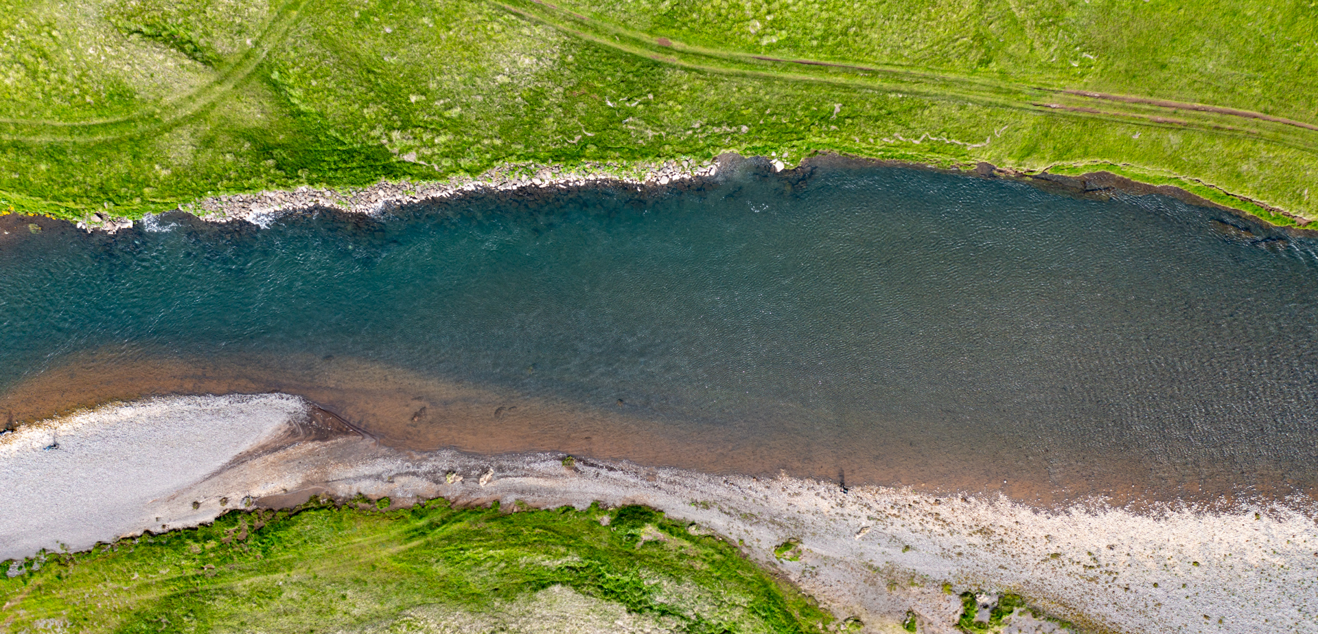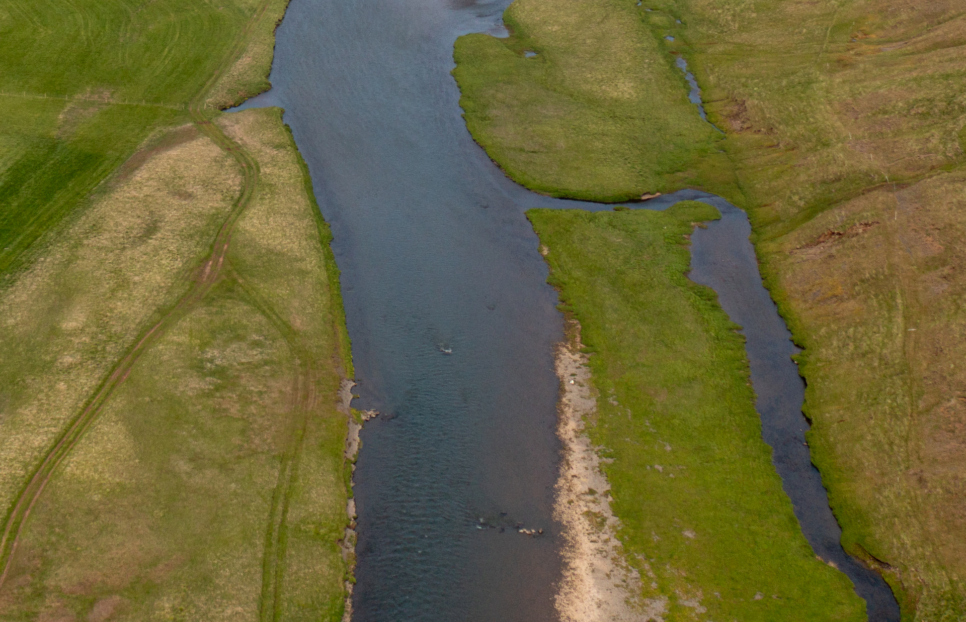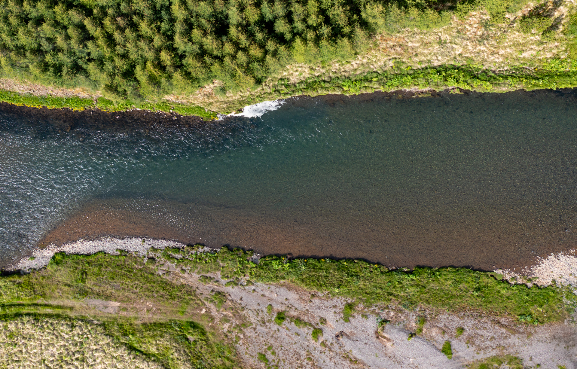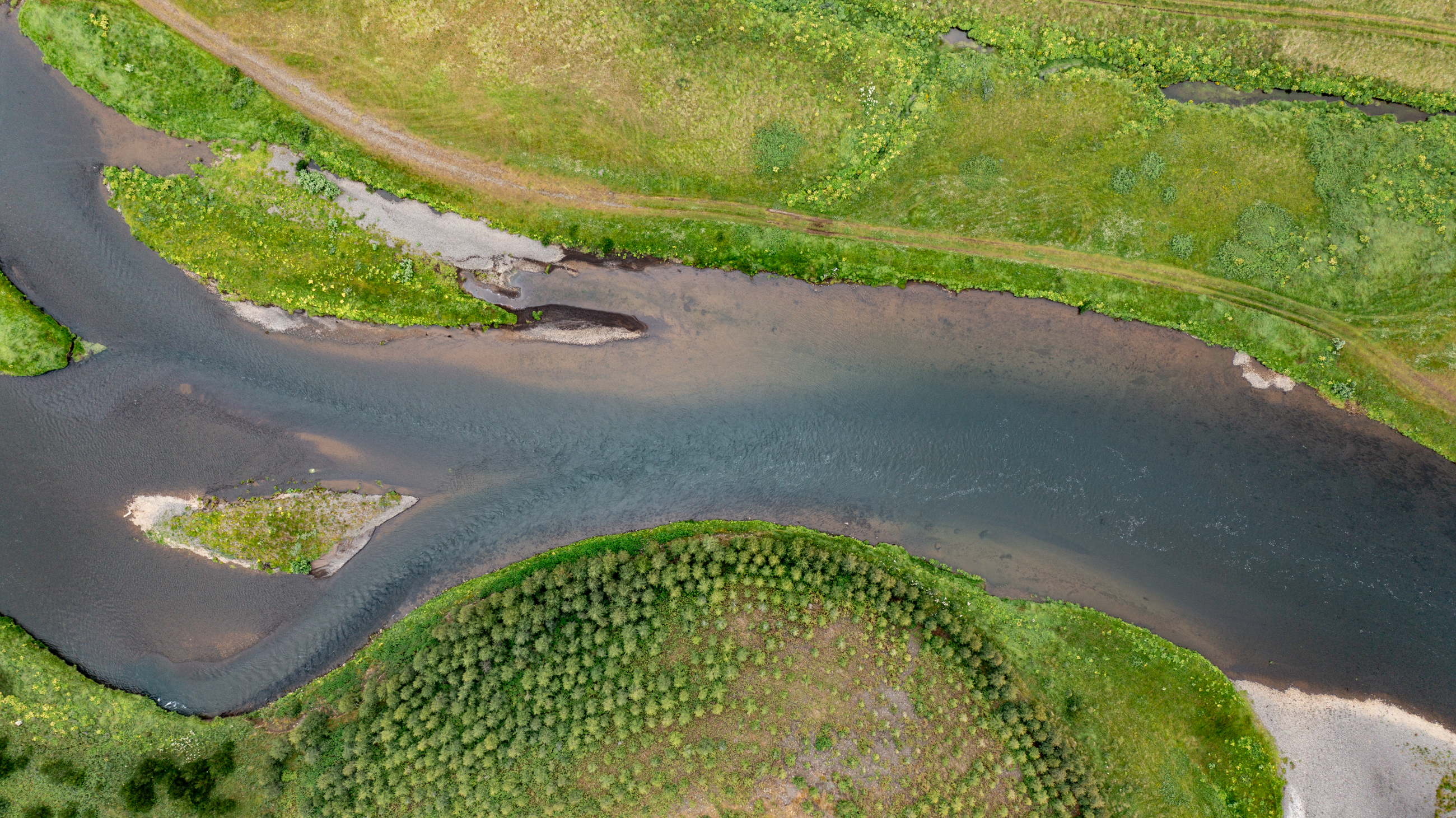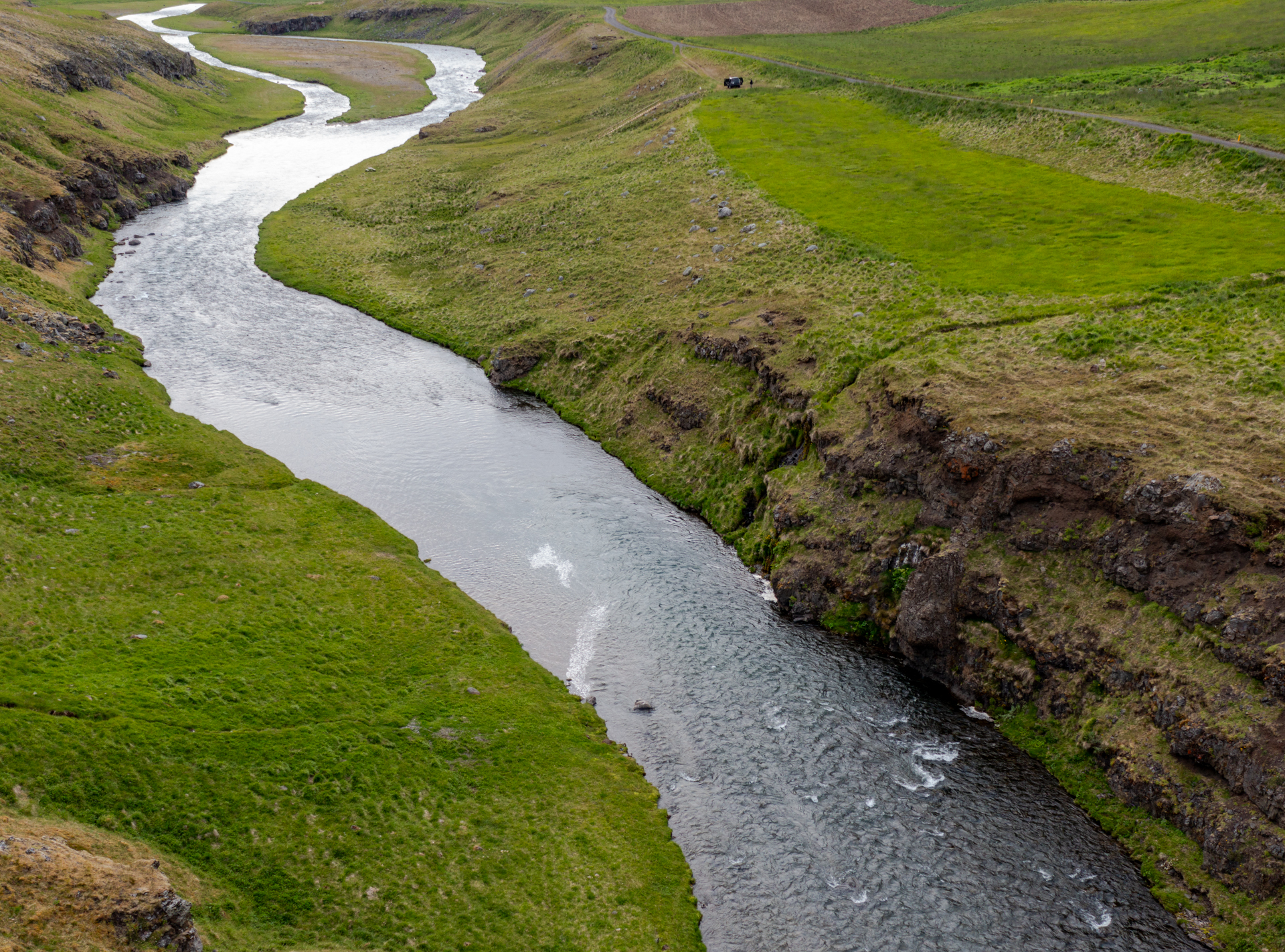 Its lowest part, one of the river’s most productive beats, lies within the trout fishing stretch below the lake Flóðið.