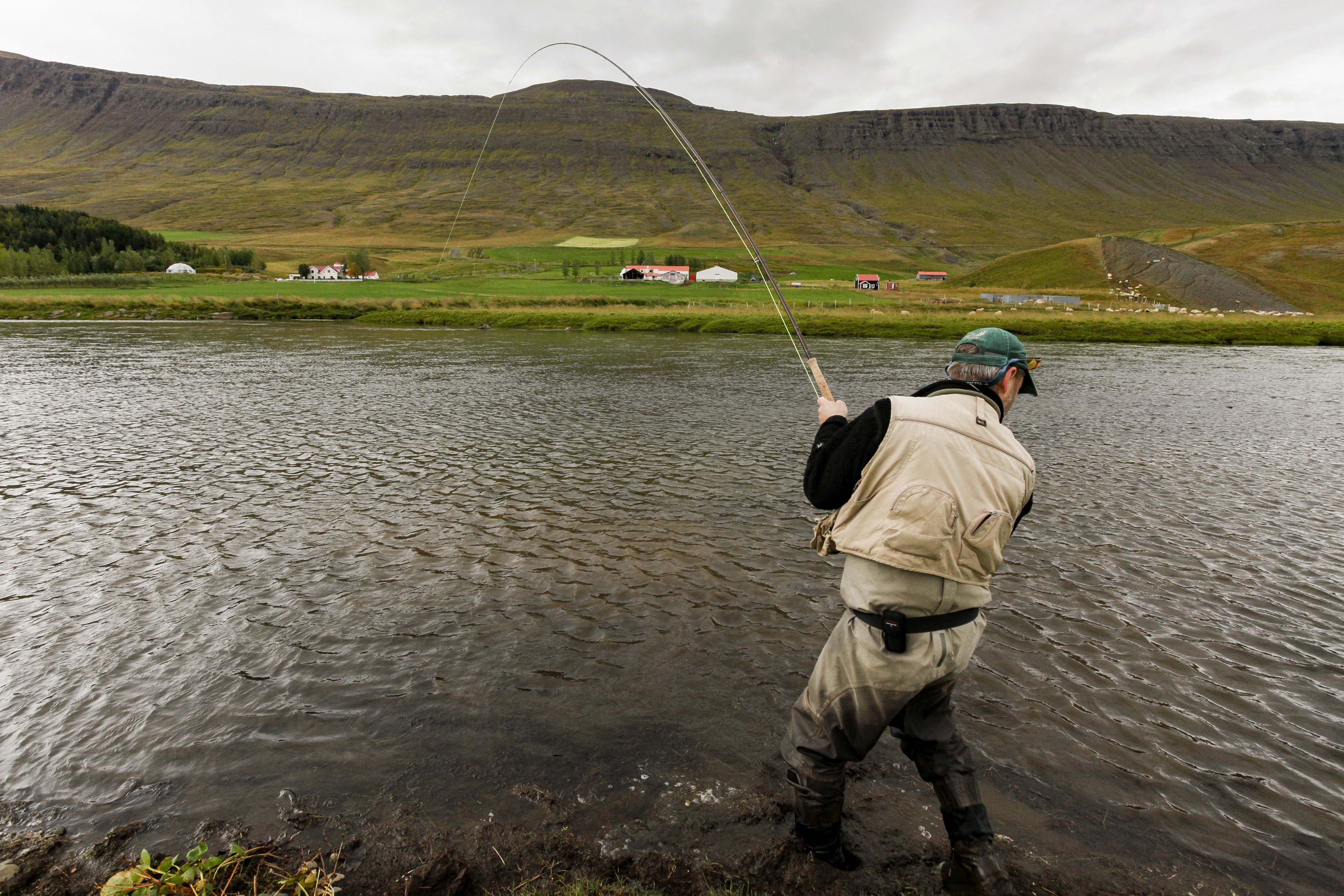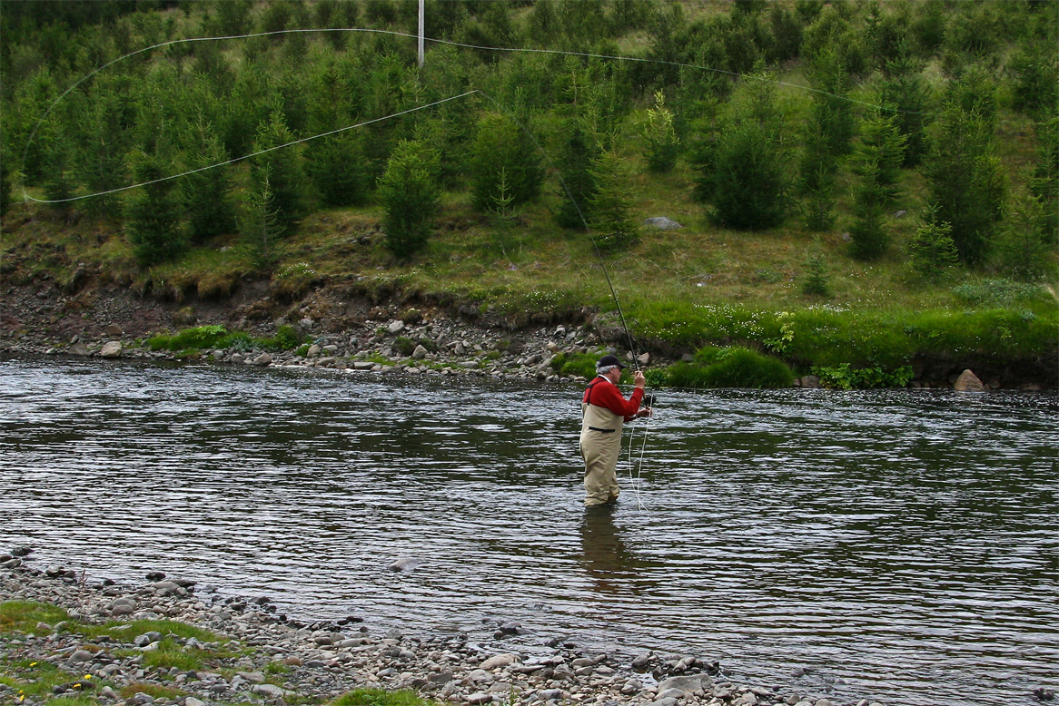 Upmost is a big rock and when the salmon is moving upwards you should fish in front of this rock and in the race further. The best place in the autumn or late in the summer is in the middle of the sandswell. The salmon lies in the middle of the river. You should fish Vaðhvammur with 45° casts and pull the fly in fast. For here one can forget time and place, Vaðhvammur has become many anglers favourite.